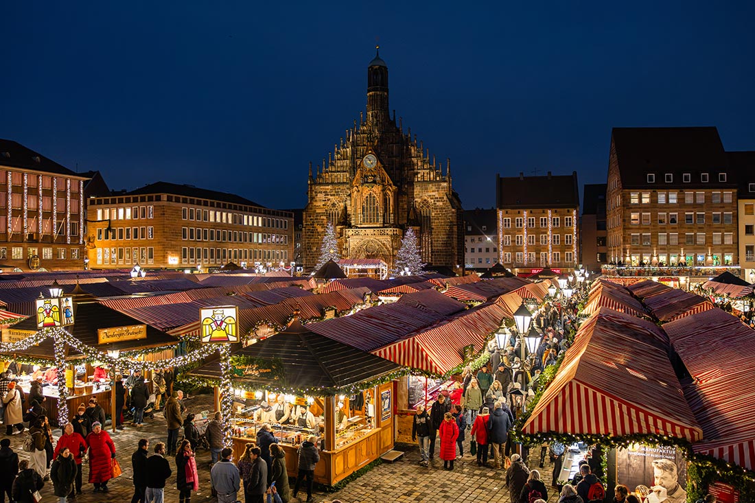 تعتبر مدينة نورمبرغ الألمانية موطناً لواحد من أقدم وأشهر أسواق الأعياد في العالم، وهو سوق طفل عيد الميلاد الذي يعود تاريخه إلى قرون مضت. تكمن عظمة هذا المكان في التزامه بالتقاليد الصارمة، حيث تُمنع الزينة البلاستيكية الحديثة وتُستبدل بالأكواخ الخشبية المكسوة بالقماش الأحمر والأبيض. يشتهر السوق بتقديم “خبز الزنجبيل” المصنوع يدوياً والدمى المصنوعة من الفواكه المجففة، مما يخلق جواً يعيد السائح إلى أجواء القرن السادس عشر. إن السير بين أزقة هذا السوق تحت ظلال الكنائس القوطية يمنح إحساساً بالهيبة والجمال، ويجعل من المدينة وجهة لا غنى عنها لمحبي الأصالة التاريخية.