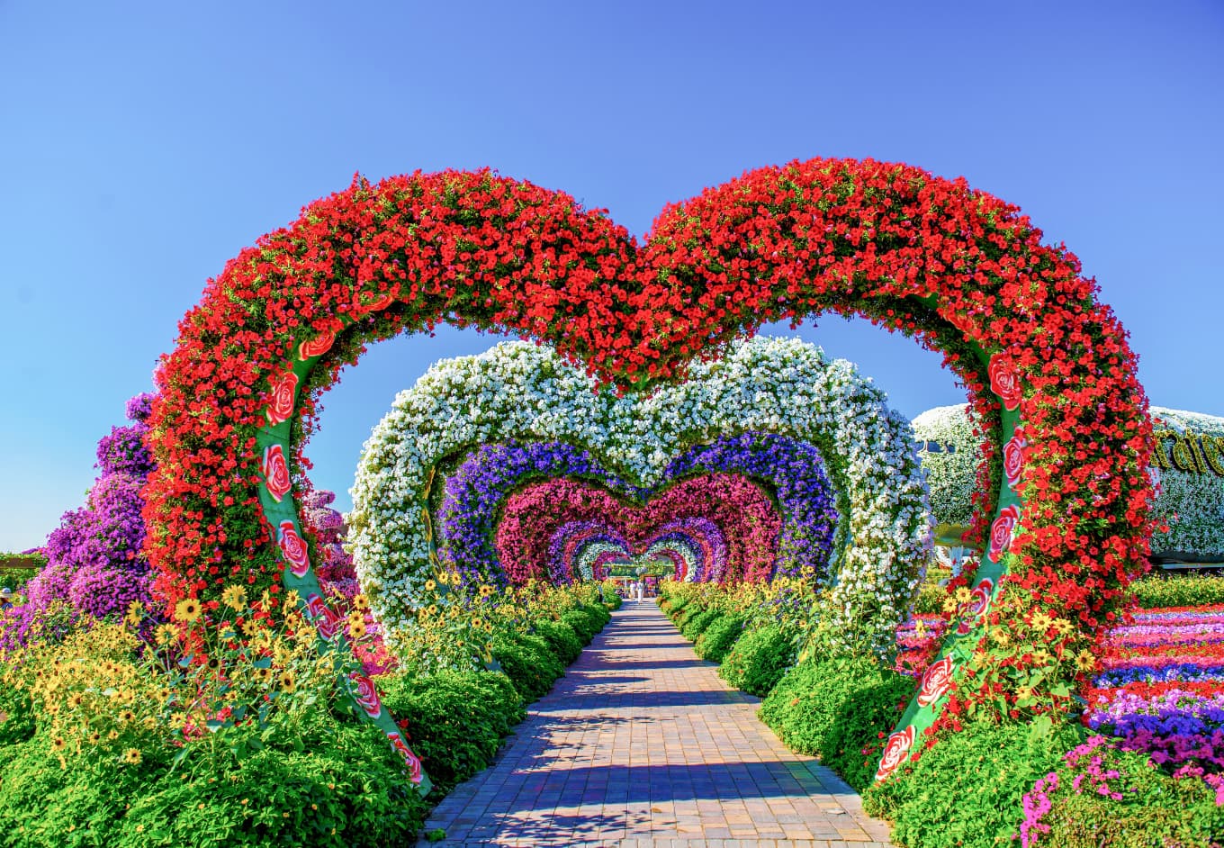 ما يُميّز حديقة دبي المعجزة ليس فقط حجمها أو عدد أزهارها، بل التفاصيل الدقيقة التي تُحوّل كل زاوية فيها إلى مشهد فني متكامل. تُرتّب الزهور في تشكيلات ثلاثية الأبعاد تُجسّد شخصيات كرتونية، قلاعًا نباتية، قلوبًا معلّقة، وحتى عربات خيالية تُشبه قصص الأطفال. الممرات مُظلّلة بأقواس من الزهور، تُغيّر ألوانها حسب الموسم، وتُضفي على التجوّل طابعًا شاعريًا. في كل ركن، هناك تنسيق لوني مدروس يُراعي التدرّج البصري، مما يجعل كل خطوة تجربة حسّية تُخاطب العين والروح.