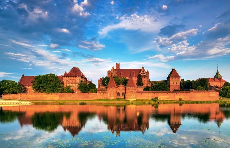 تغطي قلعة مالبورك مساحة هائلة تجعلها أكبر قلعة مبنية من الطوب في العالم، وهي نتاج جهود فرسان تيوتون في القرن الثالث عشر. ورغم الدمار الواسع الذي تعرضت له خلال الحرب العالمية الثانية، إلا أن ترميمها المتقن أعاد لها هيبتها كواحدة من أهم المعالم المحمية. تتكون من ثلاث قلاع متداخلة، وتروي جدرانها الضخمة قصص الحروب الصليبية وتاريخ الملوك البولنديين الذين اتخذوها سكناً لهم.