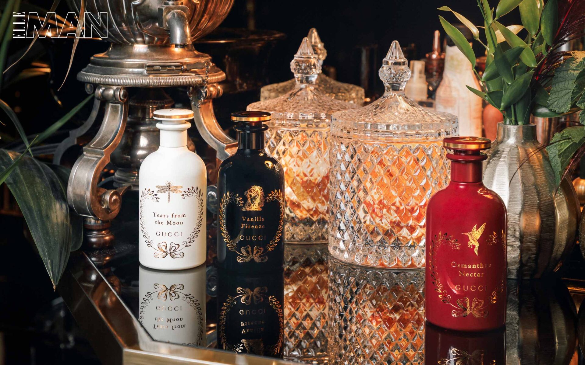 عطر Tears From the Moon من مجموعة Alchemist’s Garden من Gucci؛ عطر Vanilla Firenze من مجموعة The Alchemist’s Garden من Gucci؛ عطر Osmanthus Nectar من مجموعة The Alchemist’s Garden من Gucci