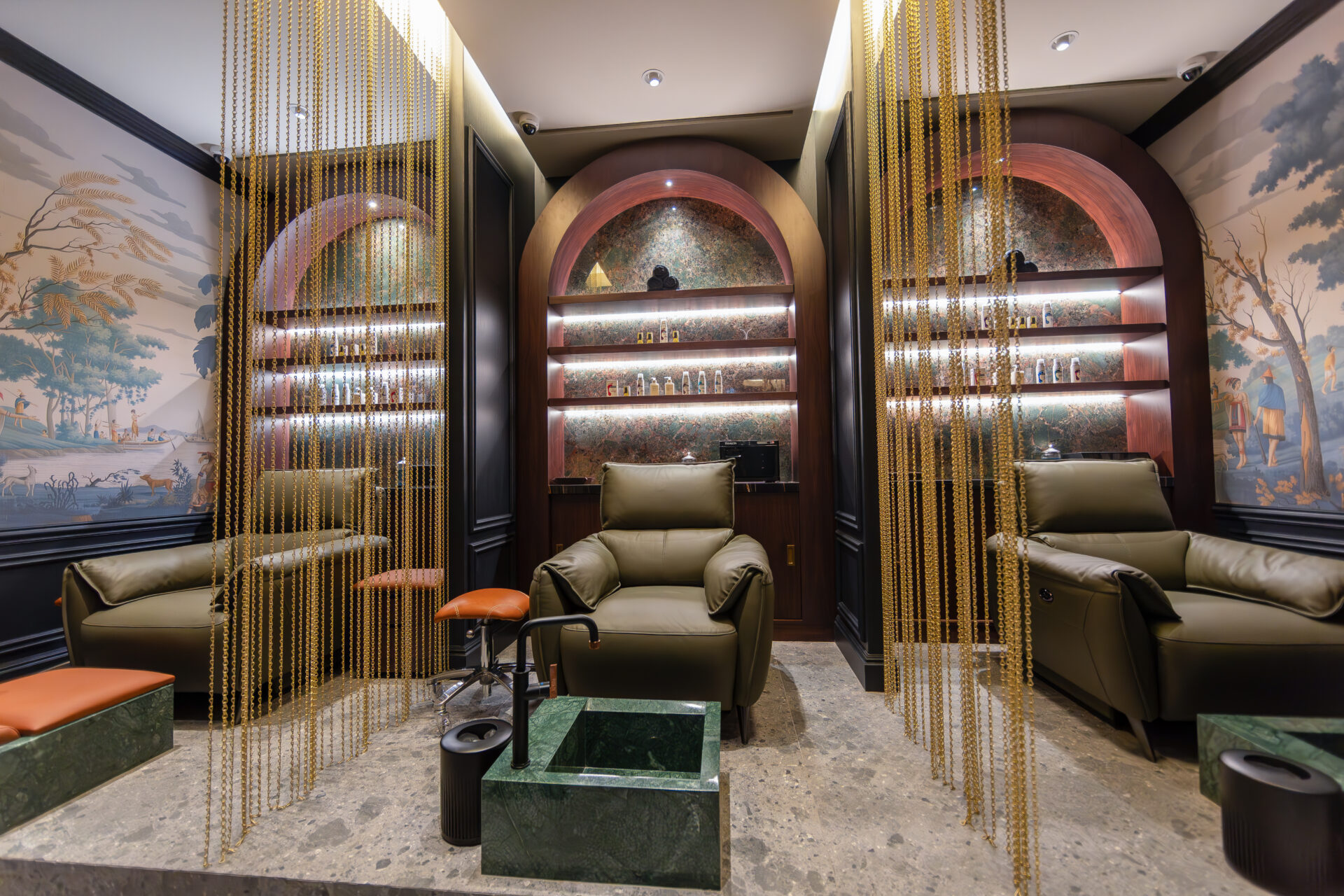 لا تتوقف تجربة Verve Barbershop عند التصميم الداخلي، بل تمتد إلى مفهوم الخدمة نفسها. فقد صُمِّمَت كراسي الحلاقة خصيصًا للمكان لتجعل الجلسة تجربة مريحة وفريدة تشبه الطقوس التقليدية للعناية الرجالية الراقية.