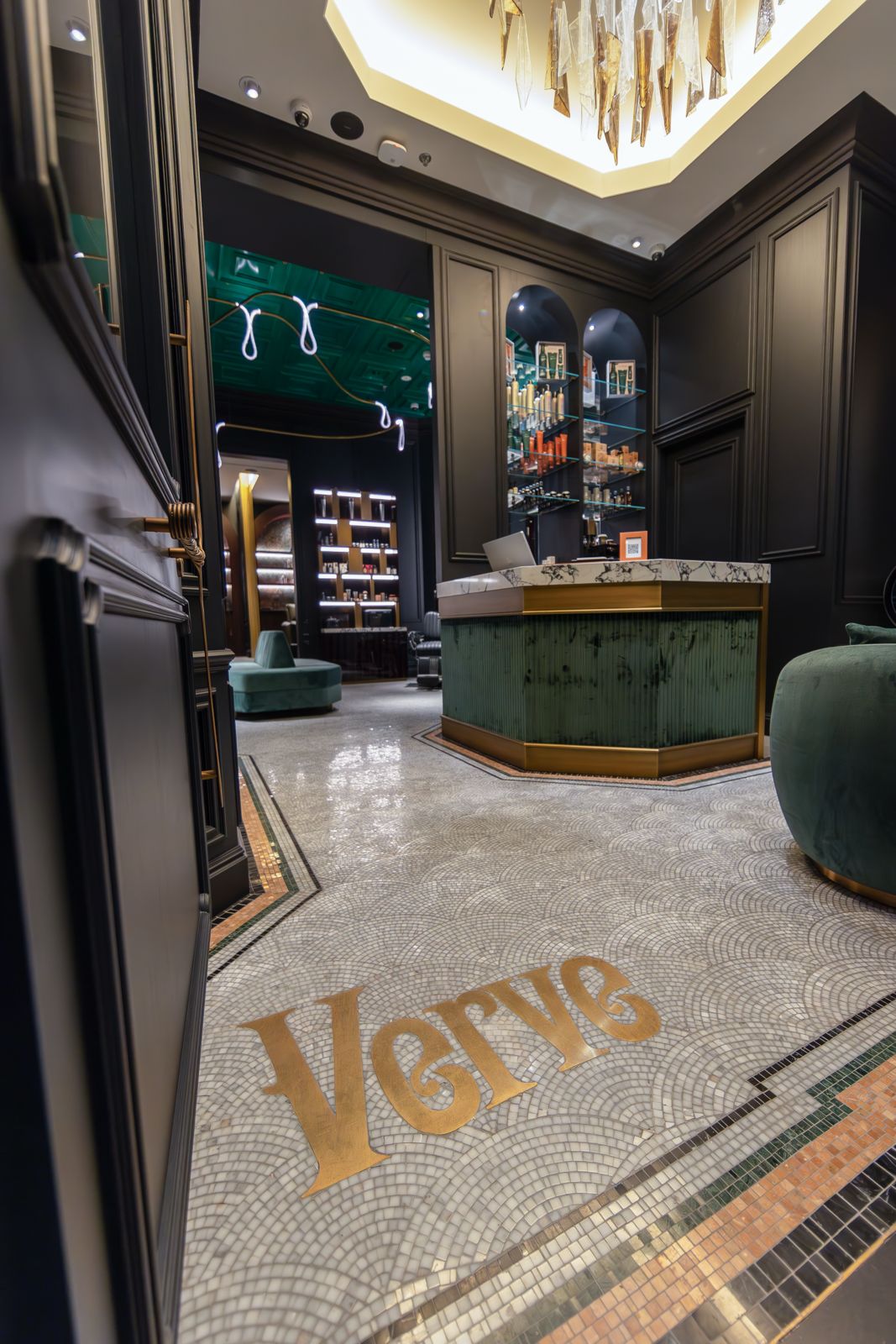 يحمل اسم Verve Barbershop معنى الحيوية والطاقة وقوة الأسلوب، وهو معنى يظهر بوضوح في كل زاوية من تصميم المكان. استُلهِمَت تفاصيل الديكور من فترات تاريخية احتفت بجمال المظهر الرفيع، مثل صالونات Belle Époque الأوروبية، وانسيابية خطوط Art Nouveau، إضافةً إلى الرمزية القوية للفن الإغريقي الكلاسيكي الذي يعكس مفهوم القوة والاتزان.