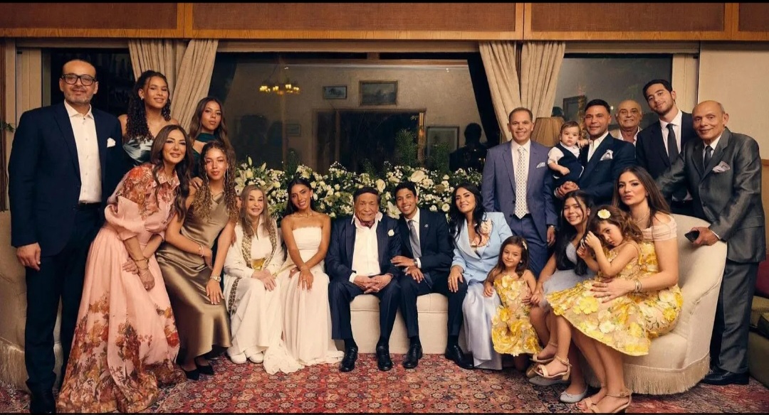 عادل إمام لم يبقَ طويلًا، إذ جلس في غرفة خاصة مع العائلة، لكنه ظهر في صورة تذكارية انتشرت لاحقًا، ظهر فيها محاطًا بأفراد عائلته والعريس والعروس.
