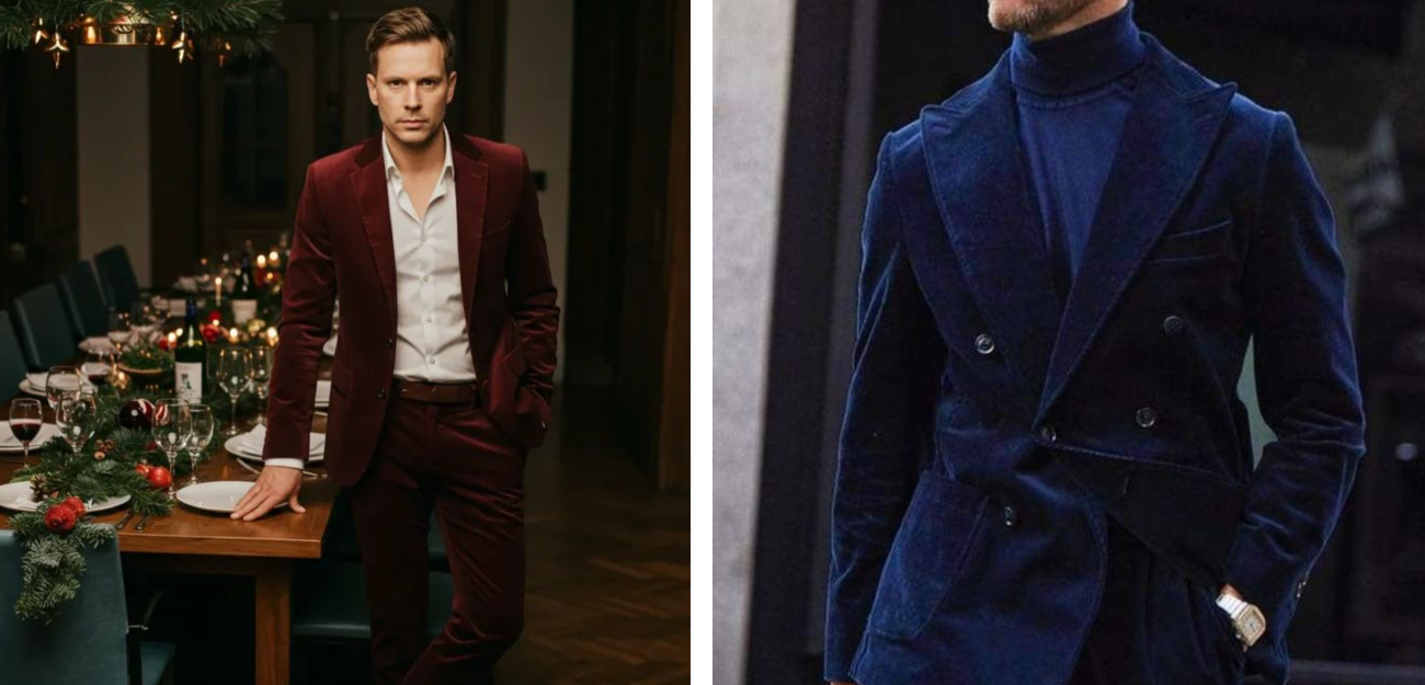 تبرز قيمة البدلات الرجالية المناسبة للأعياد من خلال الخامة التي تُنسج بها، إذ يخلق القماش الفاخر حضورًا راقيًا قبل أي تفصيل آخر. وتمنح الأقمشة مثل الصوف الناعم والموهير والقطن الثقيل ملمسًا مريحًا وشكلًا متماسكًا يحافظ على الإطلالة طوال اليوم. كذلك تُظهر الخامات اللامعة الخفيفة مثل الساتان داخل الياقات وجيوب الصدر لمسة احتفالية مناسبة للأعياد الشتوية بشكل خاص. إضافةً إلى ذلك، تعكس الخامة الجيدة استثمارًا مدروسًا يرفع عمر القطعة ويُحافظ على أناقتها مع مرور الوقت. لذلك يعكس اختيار النسيج خطوة أساسية في الوصول إلى بدلة تُناسب الأجواء الاحتفالية وتُجسّد أناقة محسوبة.