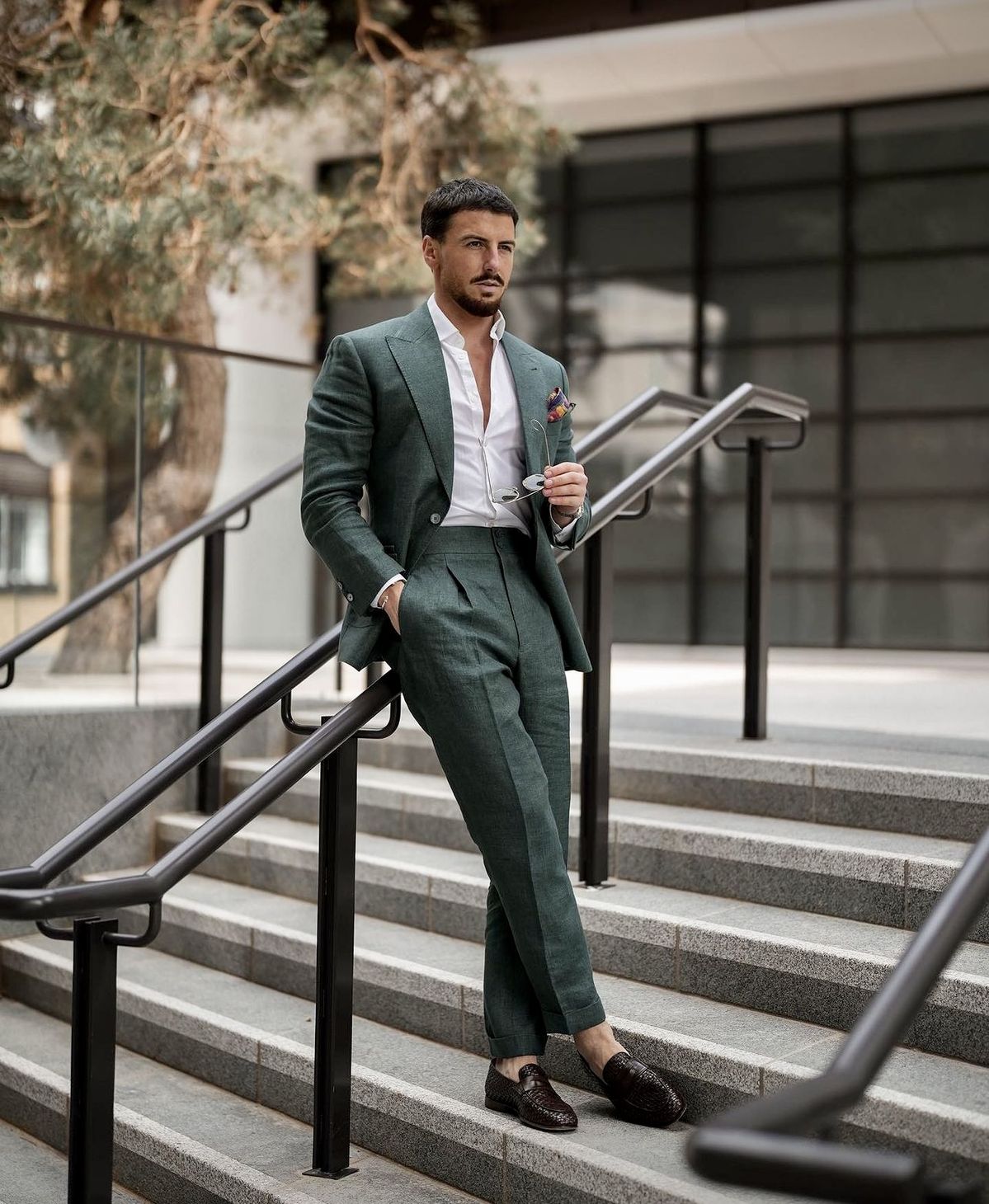 يُعطي تنسيق الملابس في اليوم الوطني الإماراتي مساحة للكاجوال الأنيق الذي يجمع بين الراحة والهيبة. تُدمَج قميص أبيض بقصّة نظيفة مع بنطال داكن وسترة خفيفة بدرجات الأخضر أو الأسود. تُضيف الأحذية الجلدية البيضاء أو السوداء لمسة نهائية بسيطة. تُظهر هذه الإطلالة أنّ الاحتفال يمكن أن يبقى بسيطًا ومتحرّكًا من دون فقدان طابع المناسبة.