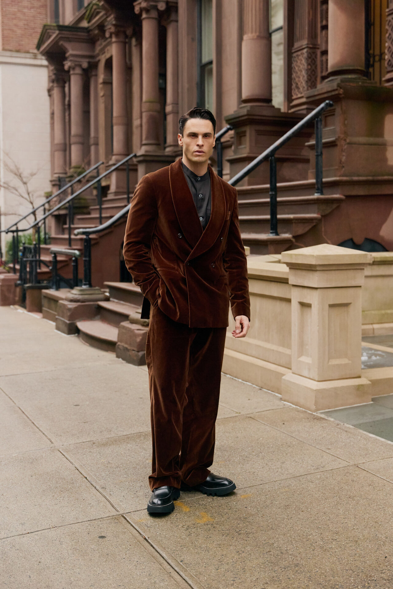ولأن المخمل يحمل طابعًا كلاسيكيًا، يُفضَّل اعتماده بألوان داكنة كالأزرق الليلي، الأخضر الزمردي، أو الأسود الملكي. يمنح هذا القماش للرجل حضورًا قويًا وراقيًا في الأمسيات الباردة، من دون أن يفقد إحساس الدفء أو اللمسة العصرية.