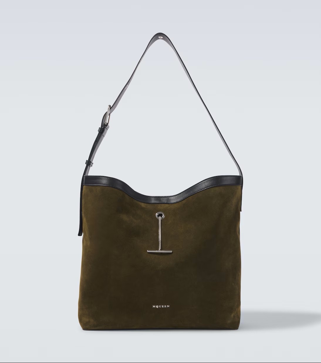 إن كنتِ تبحث عن حقيبة تسع أغراضك لكنّها ليست oversized، فما رأيك بحقيبة Mcqueen؟ تأتي باللون الكاكي الرائج جداً هذا الموسم، تُحمل على الكتف، تمزج بين قماش الجلد والسويد. عمليّة وبنفس الوقت مريحة لأن حجمها ليس مبالغ به، وتناسب جميع الإطلالات.