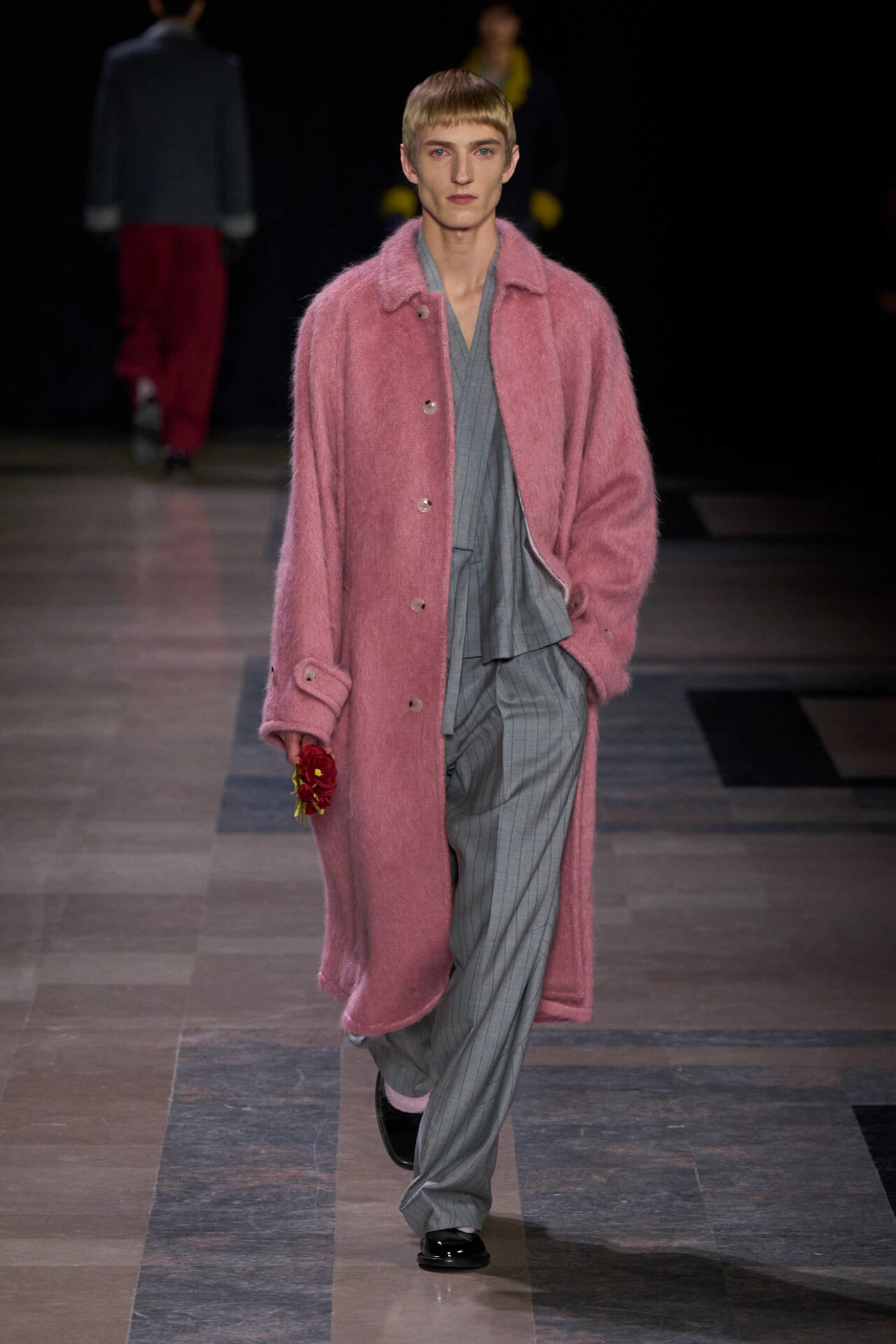 إن كنت صاحب أسلوب جريء وتحب الإطلالات الخارجة عن المألوف، يمكنك اعتماد ملابس مونوكروم، باللون الرمادي مثلاً، وتنسّق معها معطف باللون الزهري الغامق. هذه الإطلالة ستُخرجك من دائرة الإطلالات الخريفية التقليدية.