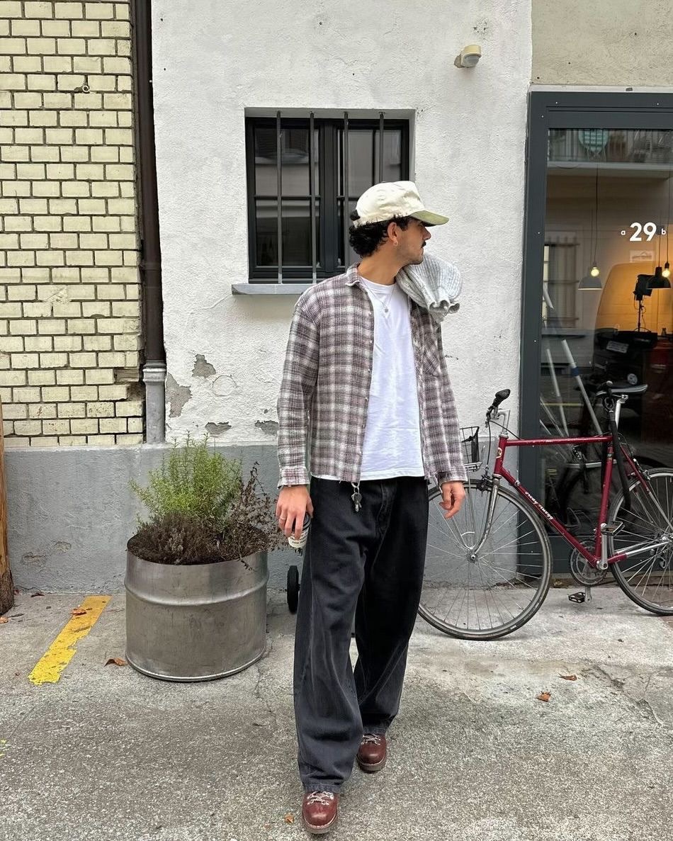 اعتمد أسلوب الطبققات لإطلالة عصريّة بحت! اعتمد القميص بنقشة المربّعات كطبقة أساسية فوق تيشرت باللون الأبيض ونسّق معهما جاكيت جلد لإضافة لمسة حيوية على اللوك. هذا الأسلوب يجمع بين الطابع الكلاسيكي للمربّعات والستايل الجريء للجلد، ما يجعله مناسباً للخروج مساءً أو للطقس البارد.