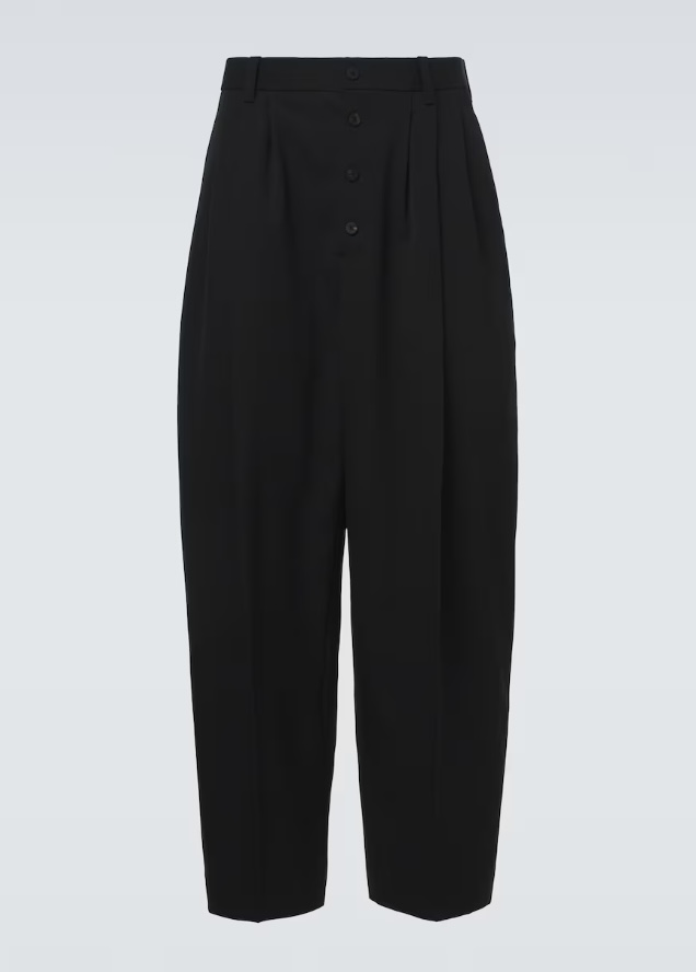 من ناحية أخرى، يقدّم  Jacquemus تفسيراً أكثر جرأة وحداثة، عبر سراويل صوفية بطيات أمامية واضحة تعزّز الحجم عند الساق وتبرز التلاعب بالنسب. هذه التفاصيل وتمنح الإطلالة حضوراً قوياً خاصة عند تنسيقها مع قطع قصيرة أو محددة من الأعلى لإبراز التباين في الأحجام.