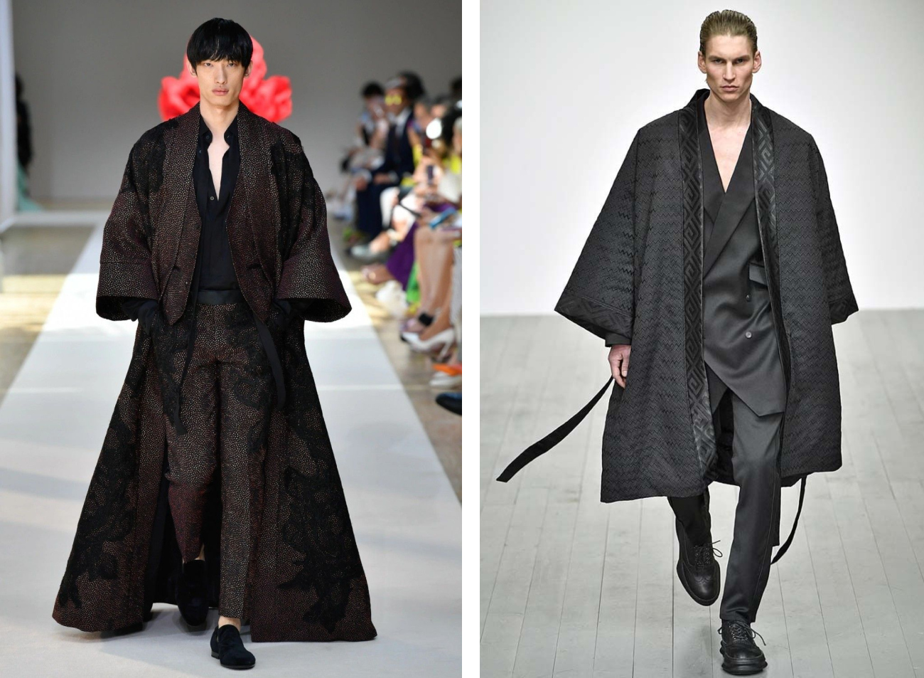 تتصدر تصاميم الKimono المشهد المعاصر للأزياء الرجالية الراقية، حيث يبرز هذا الرداء كجسر ثقافي يربط بين تقاليد اليابان العريقة وجماليات الفنون الشرقية العربية. يعكسُ هذا التوجه رغبةً متزايدةً في كسر القوالب النمطية للملابس الرسمية، فيحلُّ الكيمونو بقصاته المريحة وخاماته المنسدلة كبديل عصري يجمع بين الهيبة والراحة. يتجلى في هذا المزيج سحرٌ خاصٌ، إذ تتماهى الخطوط المستقيمة اليابانية مع الزخارف والمنسوجات التي تشتهر بها المنطقة العربية، ممّا ينتجُ قطعًا فنيةً فريدةً تلائم الرجل الباحث عن التميز في تفاصيل إطلالته اليومية.