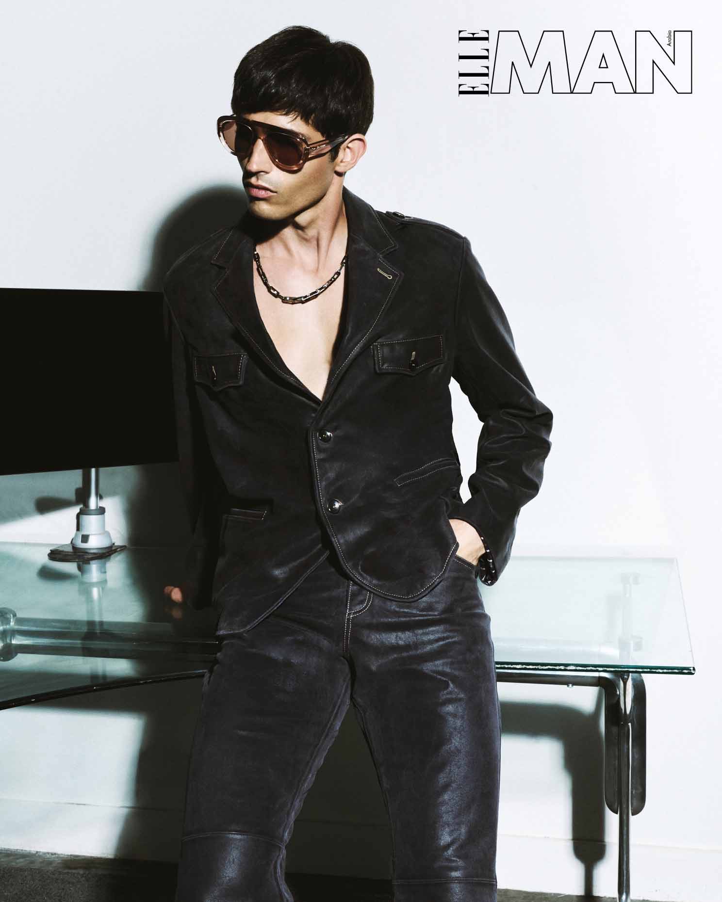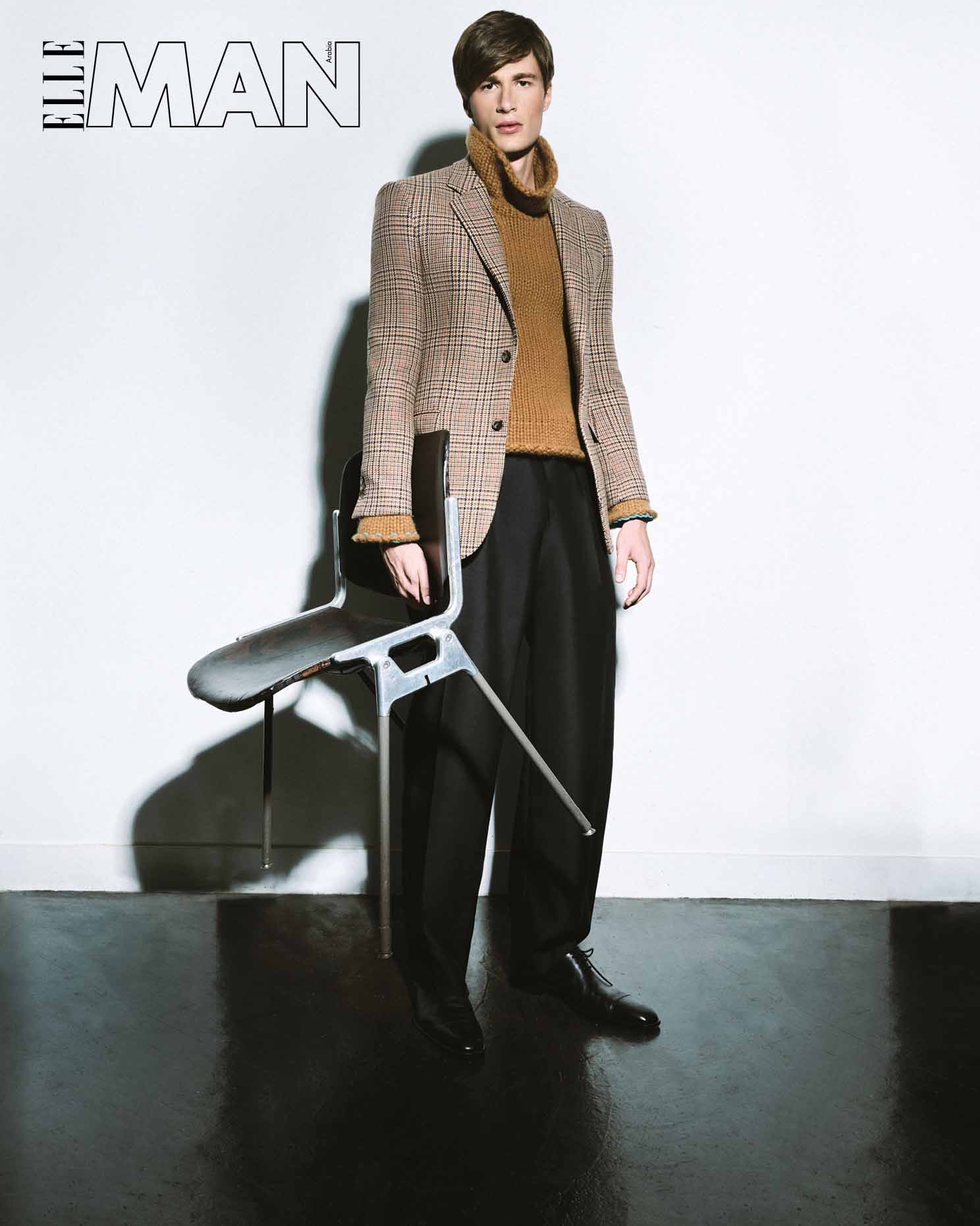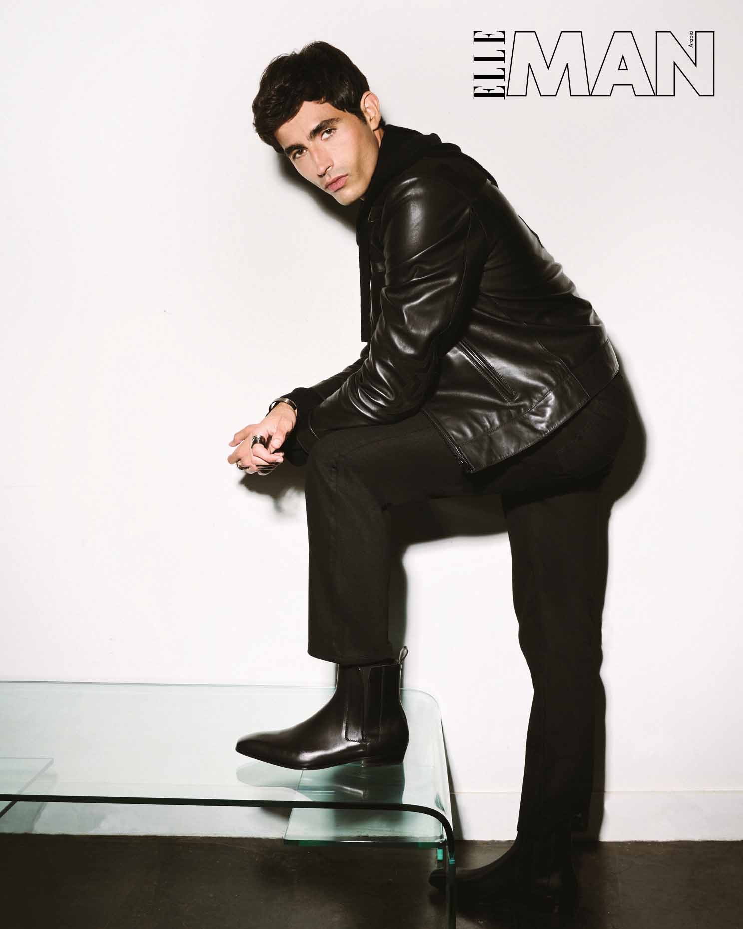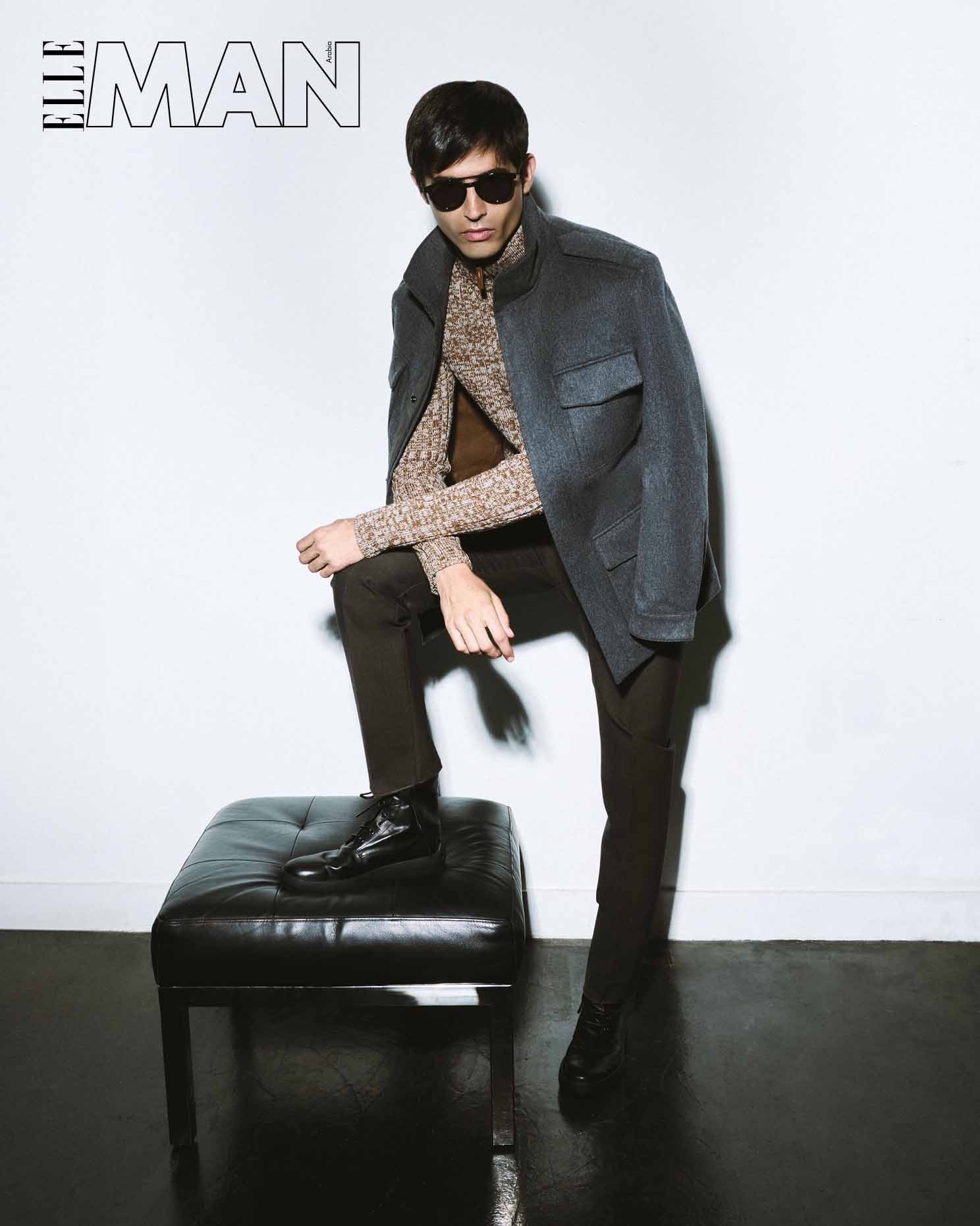 جاكيت وكنزة من Zadig&Voltaire؛ بنطلون من Paul Smith؛ خواتم وسوار من الذهب والألماس من Messika؛ جزمة من Manolo Blahnik
