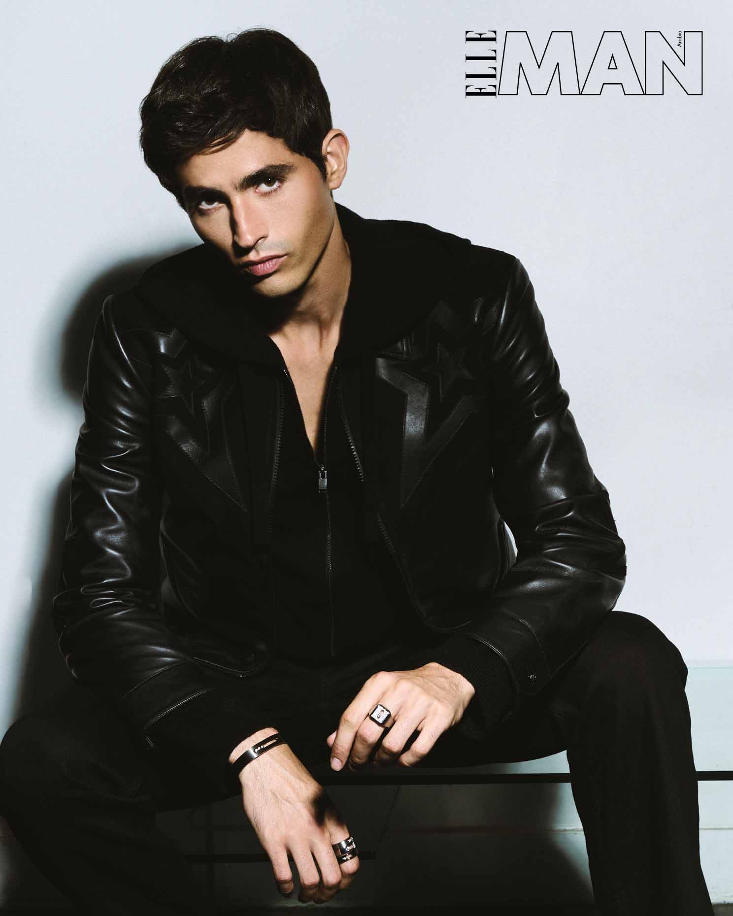 جاكيت وكنزة من Zadig&Voltaire؛ بنطلون من Paul Smith؛ خواتم وسوار من الذهب والألماس من Messika