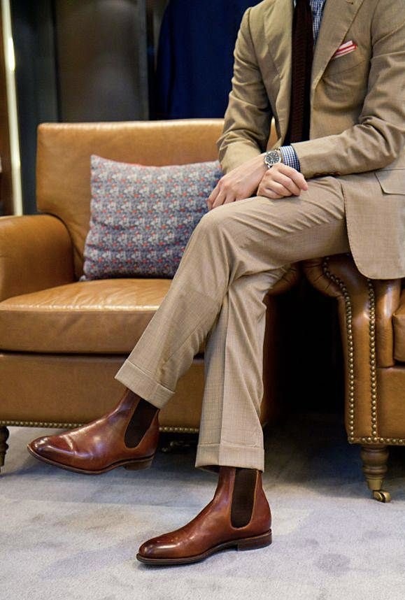 ١- حذاء تشيلسي مع السراويل الكلاسيكية