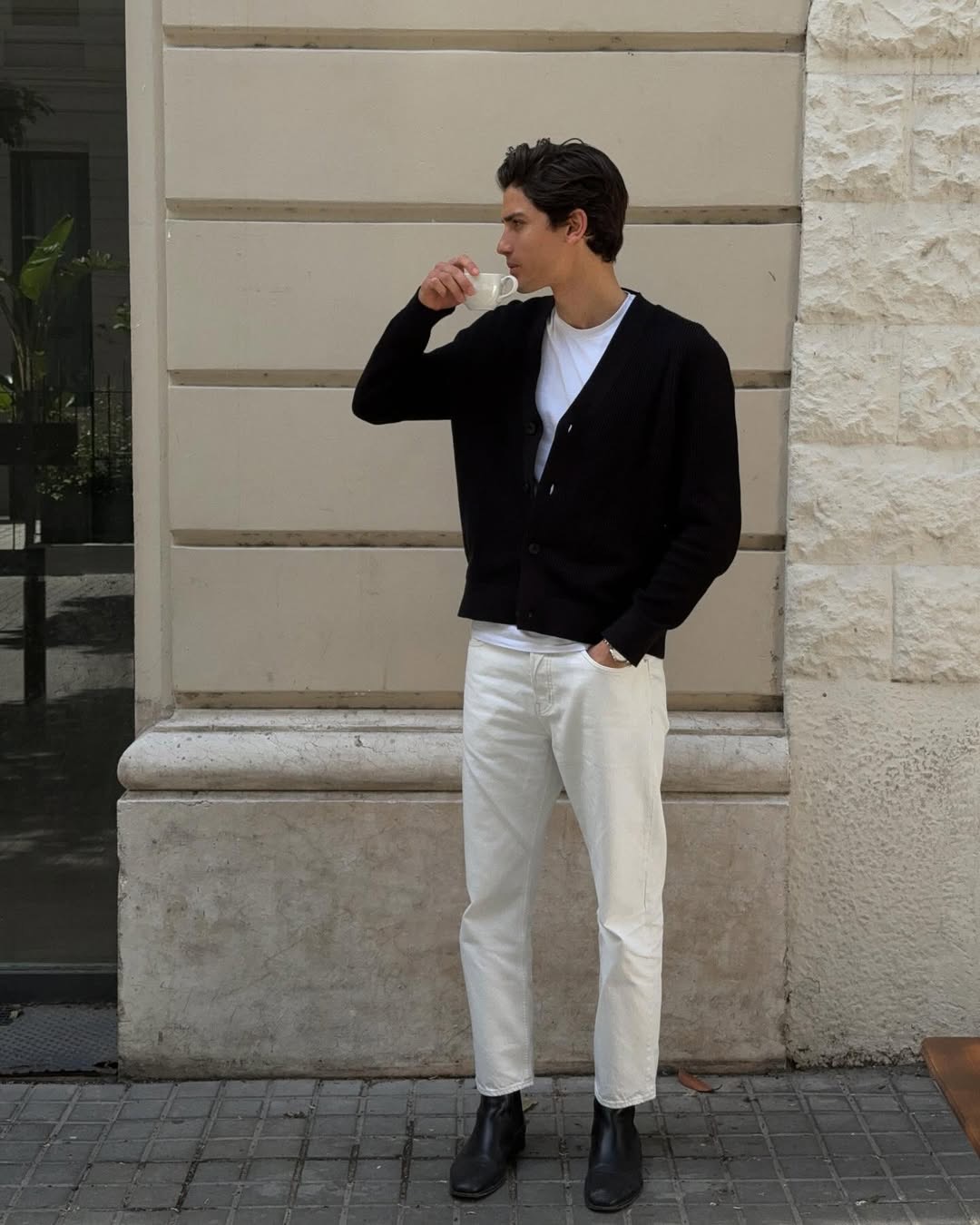 لإطلالة يومية بسيطة، يُعدّ تنسيق الكارديغان فوق تيشيرت أساسي خياراً مثالياً. اختر الألوان الحيادية مثل الأبيض أو الرمادي لتضمن توازناً في اللوك، ثم أضف سروال جينز بقصّة مستقيمة أو واسعة، لتحصل على مظهر مريح وعملي يناسب النهار.
