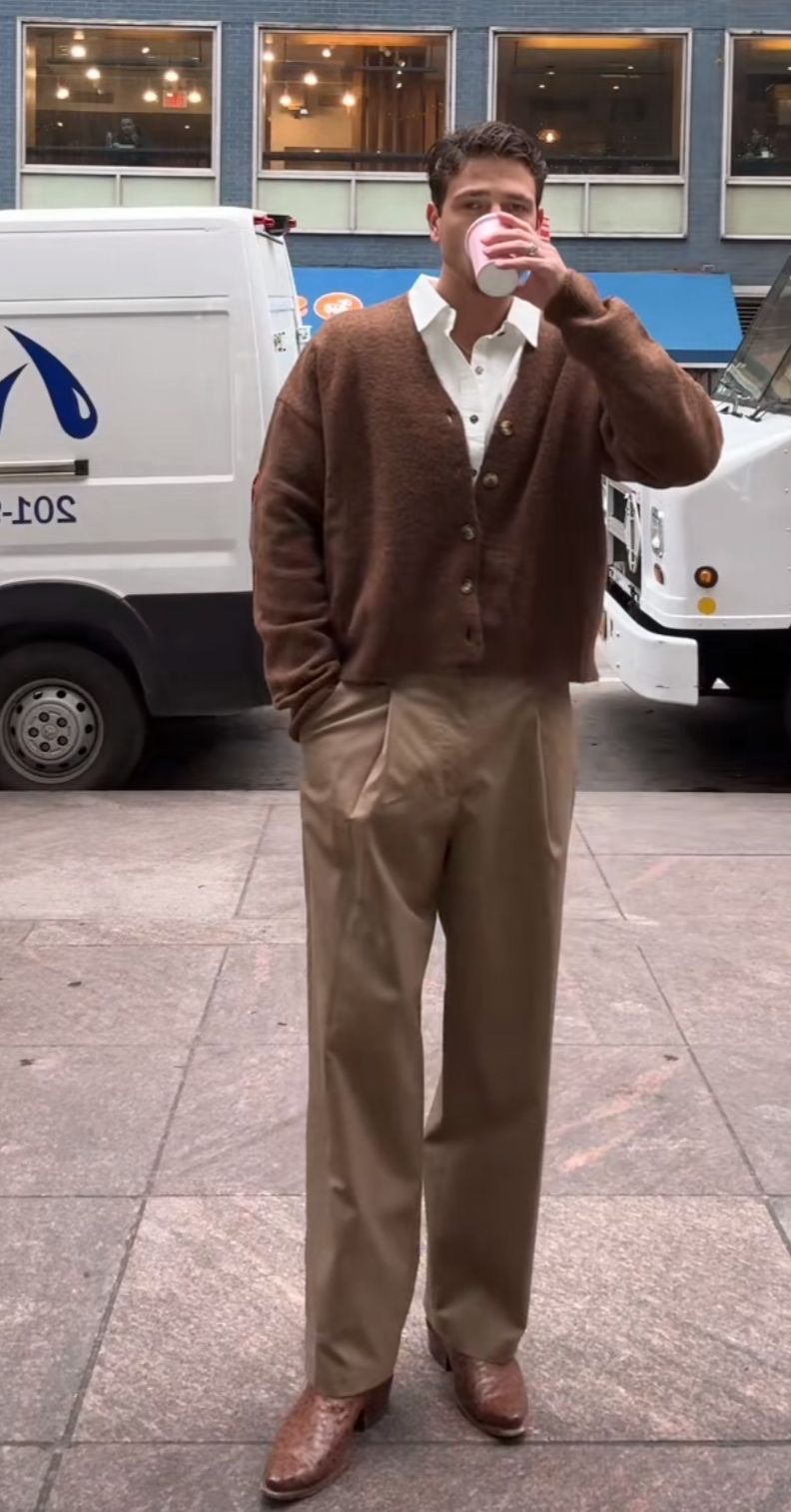 أما إذا كنت تبحث عن أسلوب أكثر أناقة، فجرّب اعتماد الكارديغان فوق قميص كلاسيكي. هذا التنسيق يرفع الإطلالة فوراً، خاصة مع سروال كلاسيكي. يمكنك أيضاً إغلاق الأزرار للحصول على مظهر مرتّب، أو تركها مفتوحة لإحساس أكثر انسيابية.