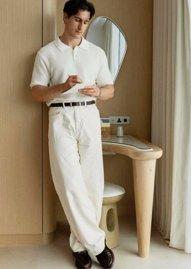 ارتدي البنطلون الأبيض مع قميص بألوان هادئة مثل الأزرق الداكن أو الرمادي، وأضف حذاء جلدي بني أو أسود لإطلالة مرتبة وأنيقة تصلح للعمل أو المناسبات الرسمية.