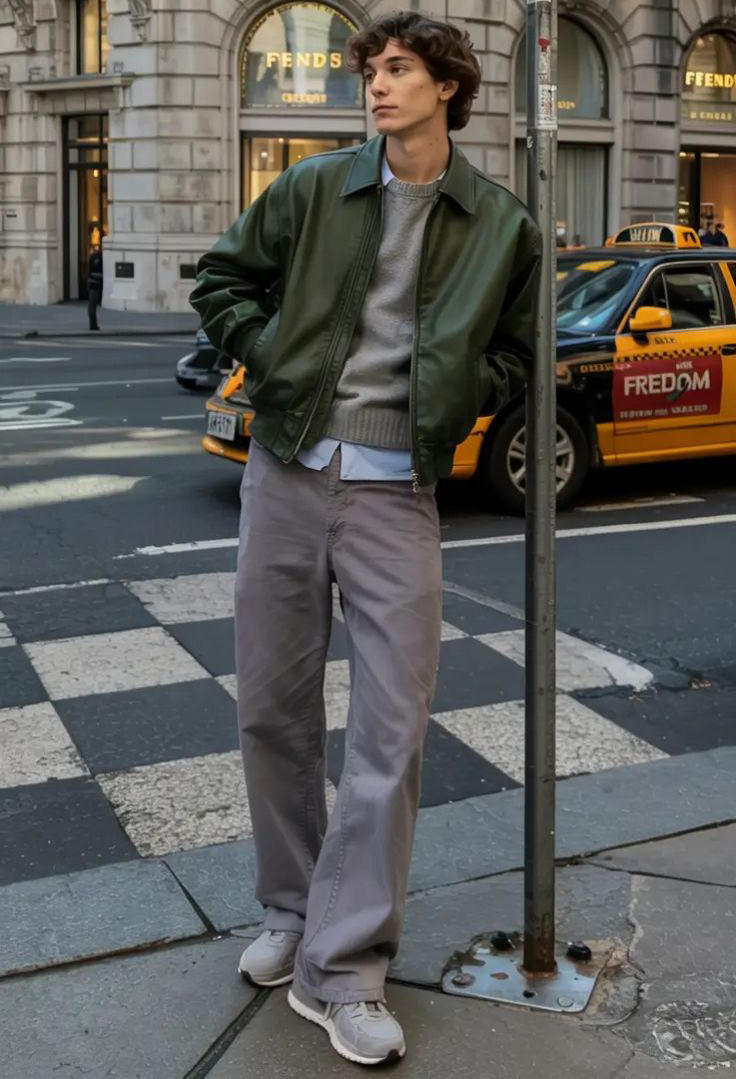 الجاكيتات الجلدية أو البومبر أو السترات الخفيفة المصنوعة من الكتان أو القطن مثالية لهذه الفترة. اختر ألواناً حيادية مثل الكاكي، الرمادي أو الكحلي لتسهيل تنسيقها مع بقية الملابس.