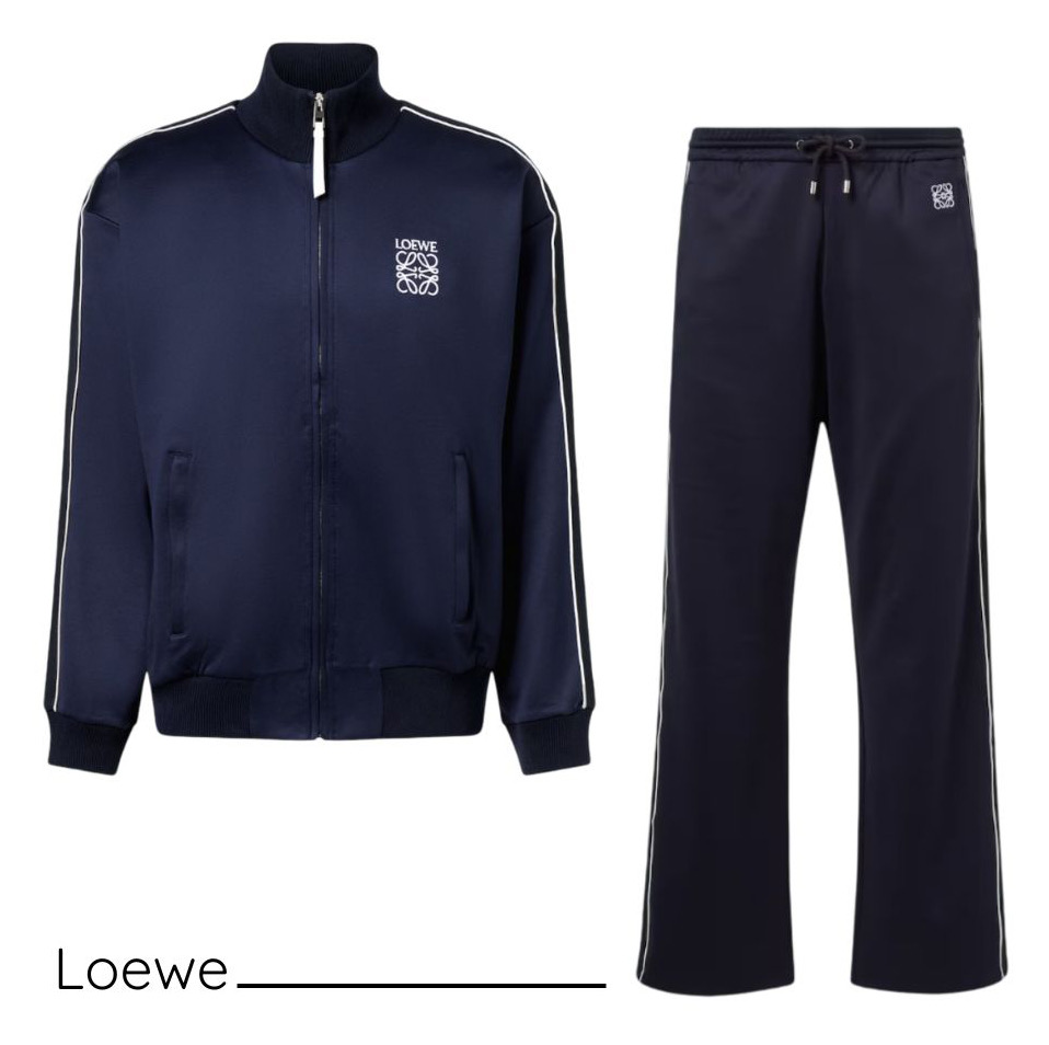 التراكسوت الكحلية مع خطوط بيضاء جانبية، مثالية للقاءات غير الرسمية أو عند السفر. نسّقها مع سنيكرز أبيض وكنزة قطنية خفيفة لإطلالة مستوحاة من الطابع الرياضي الراقي.