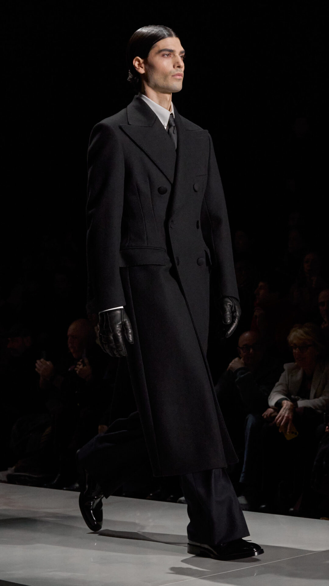 الخياطة، وهي عنصر أساسي في هوية Dolce&Gabbana، تظهر هنا بروح أكثر تحررًا. لا قيود صارمة، بل بناء يخدم التعبير. الخطوط تحدّد الموقف، والأقمشة تستحضر الشعور. المخمل، الصوف، الحرير، والأنسجة المزخرفة حديثًا، كلها أدوات تُستخدم لرسم إحساس معيّن، لا لفرض شكل واحد.